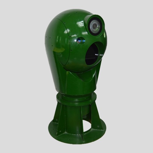 自動跟蹤球型光電轉臺攝像機采用陀螺穩定超強抗風轉臺、低照度高清透霧攝像機、高清透霧鏡頭、熱成像儀,軍用大功率激光器(選用),通過科學、先進的手段集合而成,可進行晝夜對目標的識別、監測、手動鎖定、自動追蹤、測向預判。